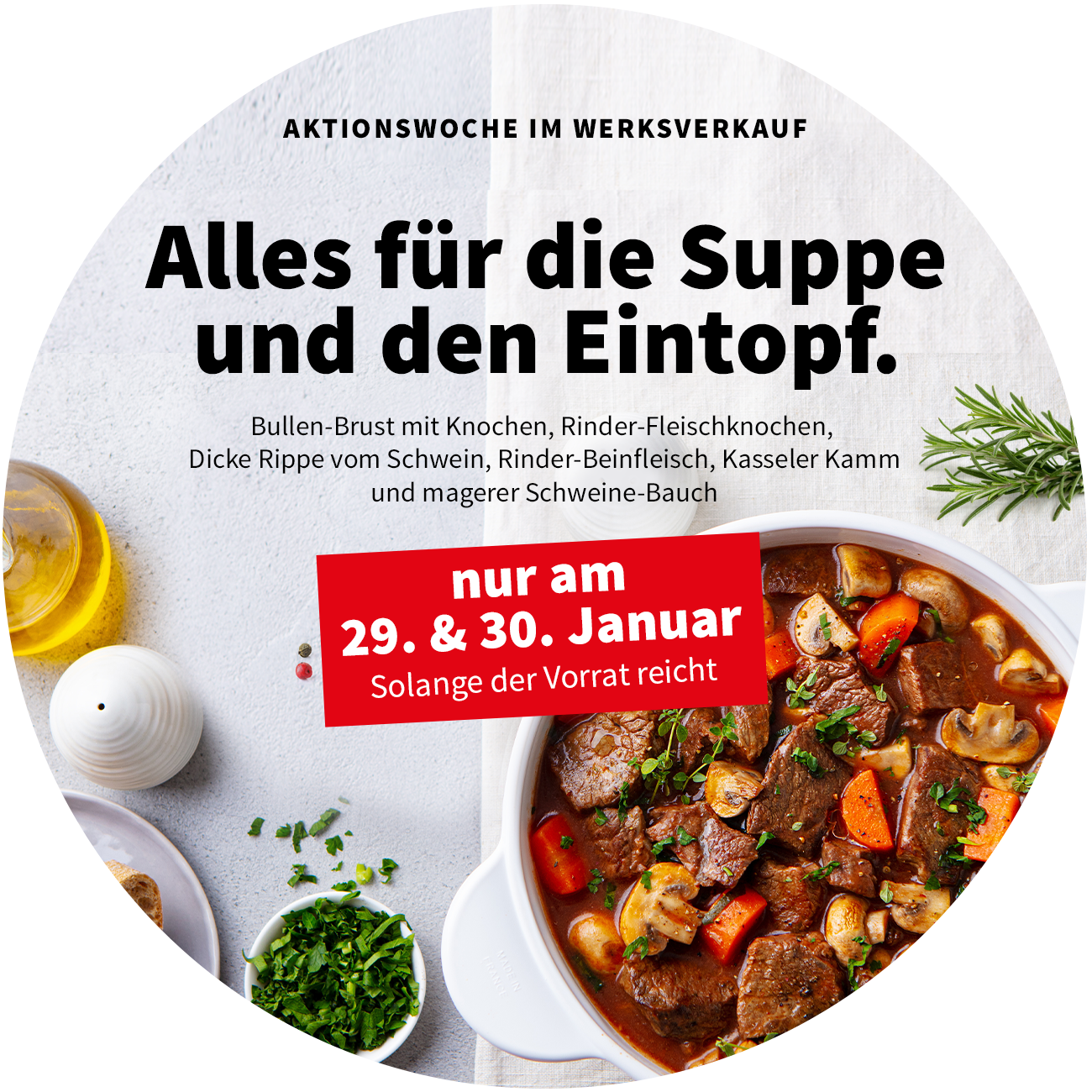 Bitte bestellen Sie mindestens 3 Stunden vor der Abholung in unserem Werksverkauf während unserer Öffnungszeiten (Do. + Fr. 10 – 17 Uhr).